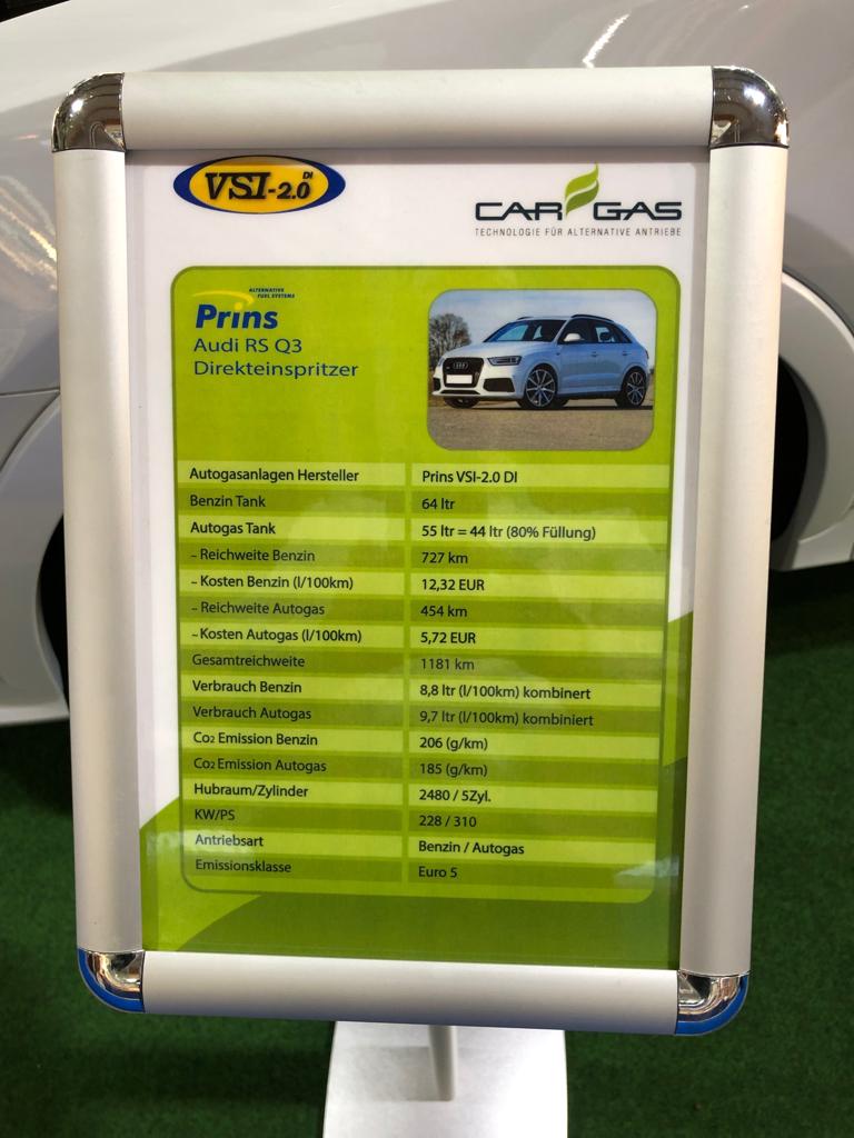 Unsere mitgebrachten Beispielfahrzeuge, ein Audi RS Q3- und Mercedes C180-Direkteinspritzer, haben die einfache und dennoch so effiziente Prins VSI-2.0 Direkteinspritzer-Anlagen-Technik demonstriert. Die Autogas-Technik lässt sich in nahezu jedes Fahrzeug, egal ob Alt- oder Neufahrzeug, Luxus- oder Kleinwagen installieren. Weitere Technik in Form einer Autogaszapfsäule oder den einzelnen technischen Komponenten der Autogasanlage wurde hervorragend durch unsere Mitarbeiterinnen und Mitarbeiter präsentiert.