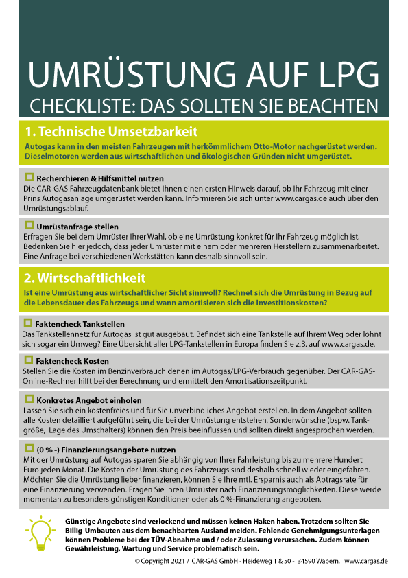 Alternativ können Sie auch nur die Checkliste downloaden: Checkliste Autogas [PDF-Download | DE | 437 KB]