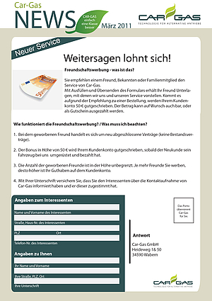 Sie empfehlen einem Freund, Bekannten oder Familienmitglied den Service von Car-Gas.